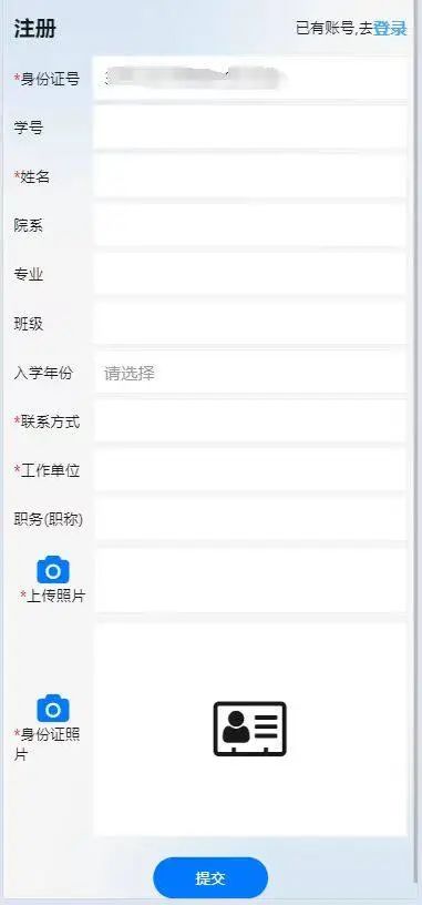填写以下信息,上传证件照(照片格式:.jpg,.png,.jpeg),用于扫码进入校园。